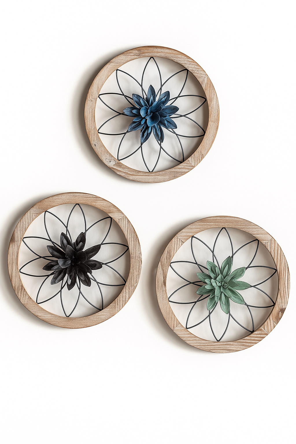 Bloomwheel Drift features three wooden circles accented with delicate flowers, evoking the gentle flow of a breeze through a blooming garden. Match your favorite colors together to make a serene, nature-inspired piece that adds calm and elegance to any space.
